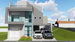 Sala com escada, hall central com pé direito duplo, 4 quartos sendo 2 suítes, sacada, closet, com subsolo